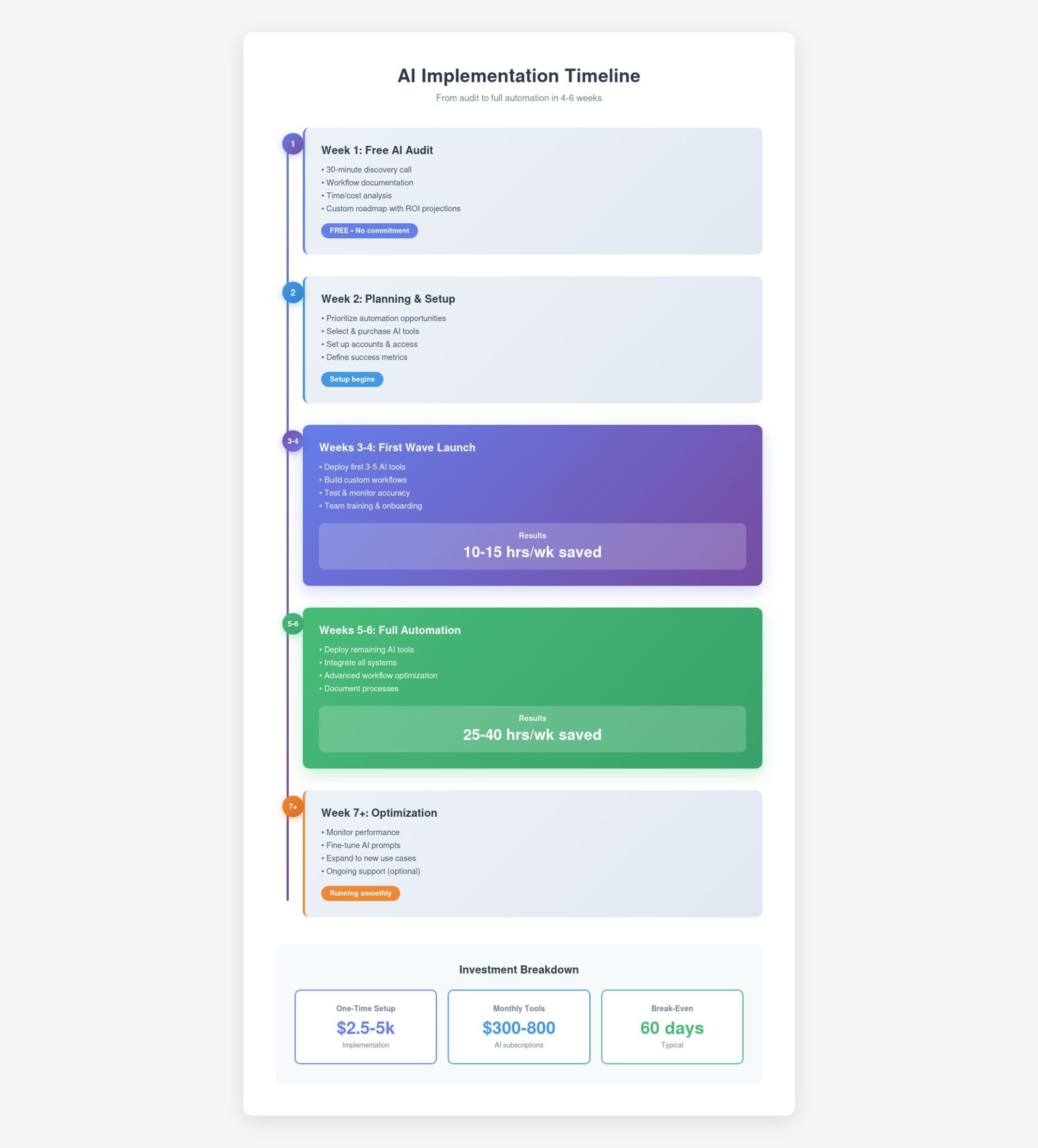 Here's the catch: Most businesses try to implement AI tools themselves and fail.