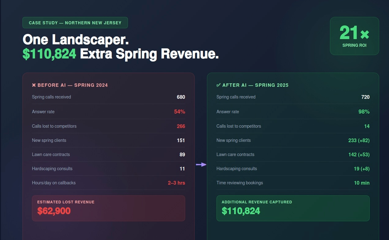 We'll show you exactly how many spring calls you're missing and how much revenue AI would capture for your landscaping company.