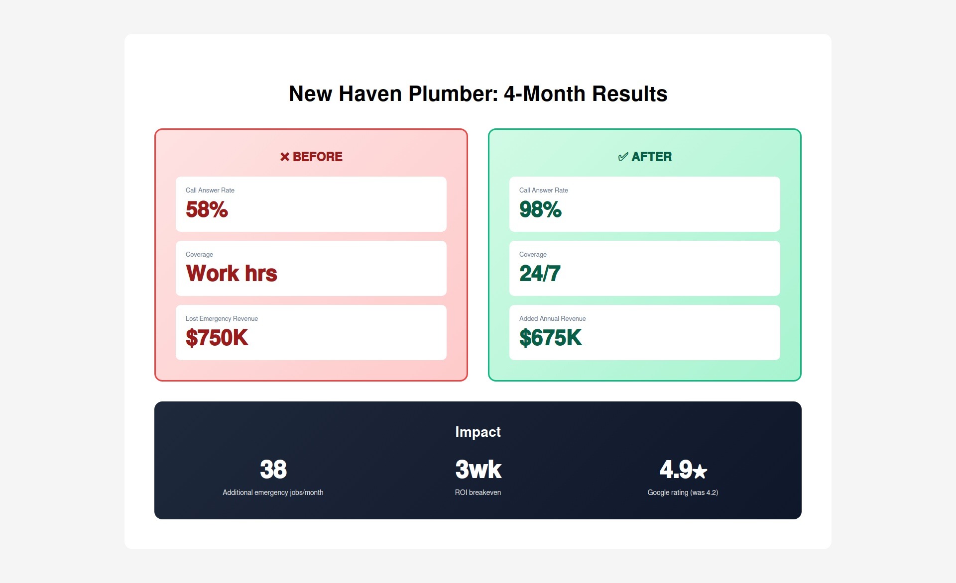 The reality: Connecticut plumbing companies lose $200,000+ per year in revenue from missed emergency calls. Not spam. Not bad leads. Real customers with real emergencies who needed help RIGHT NOW.