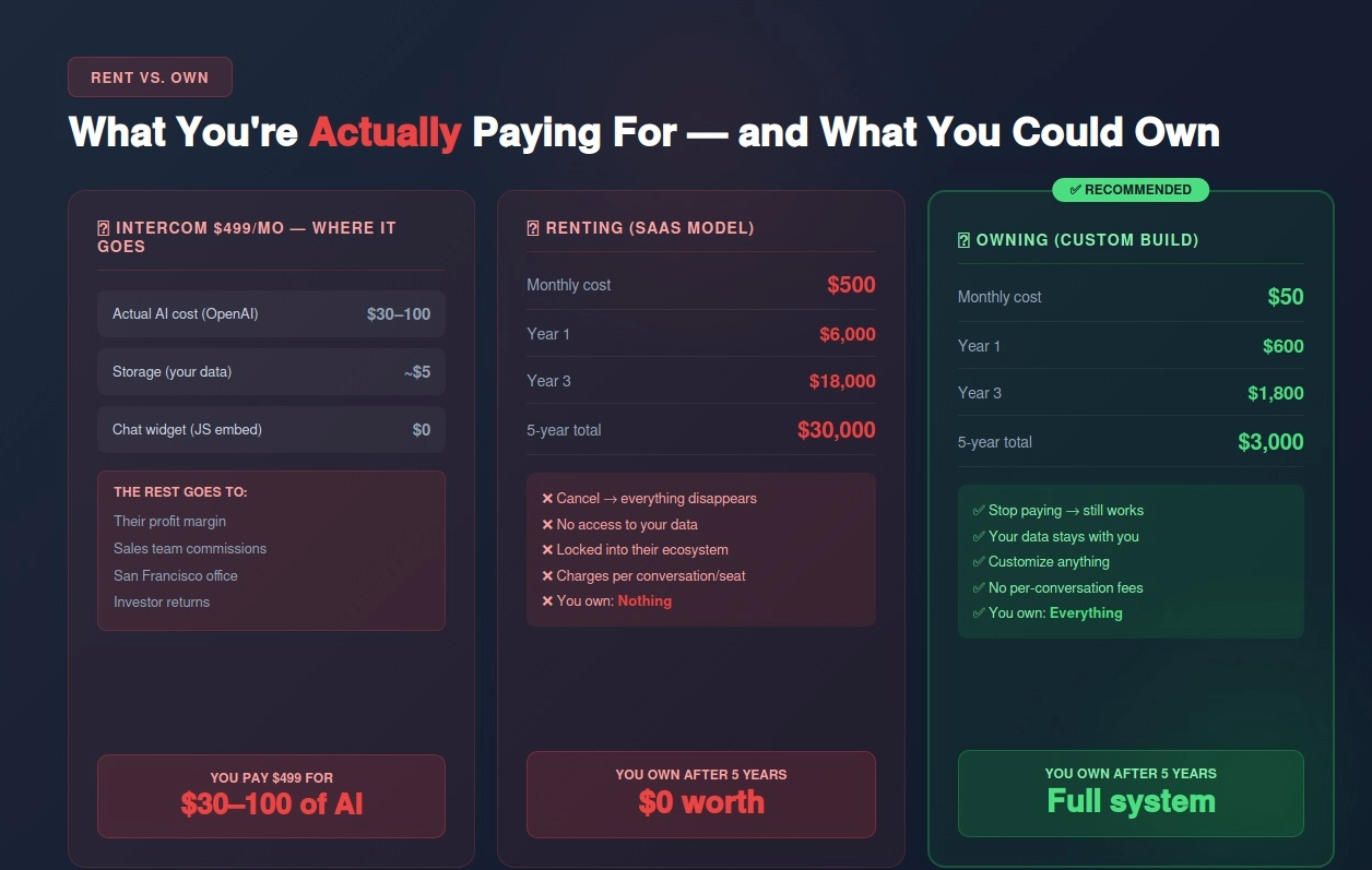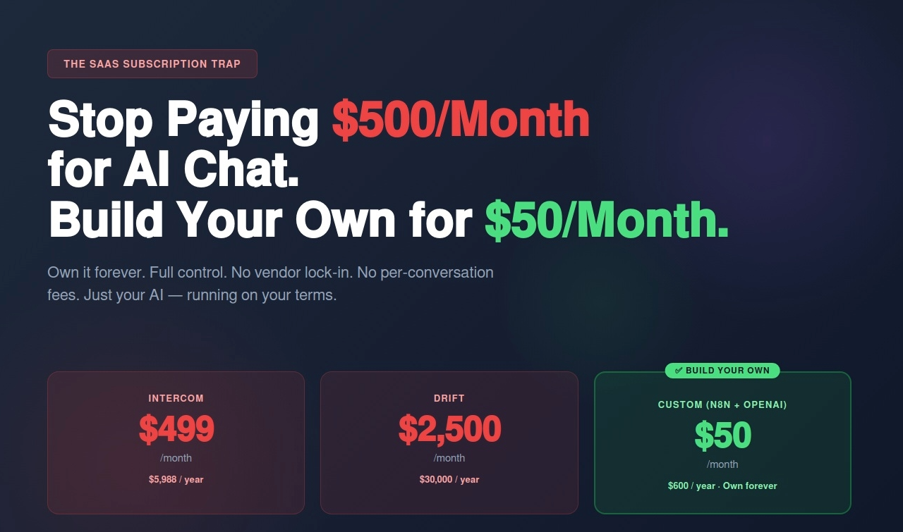 The problem: You're paying $500+ per month for AI chatbot SaaS that you'll never own.