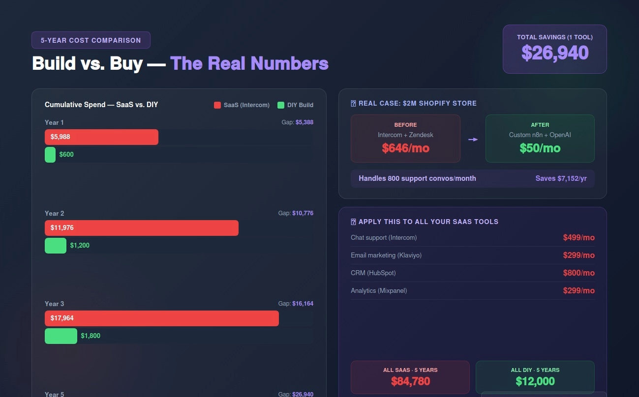 Multiply this across 5-10 SaaS tools and you're saving $100K-$250K over 5 years.