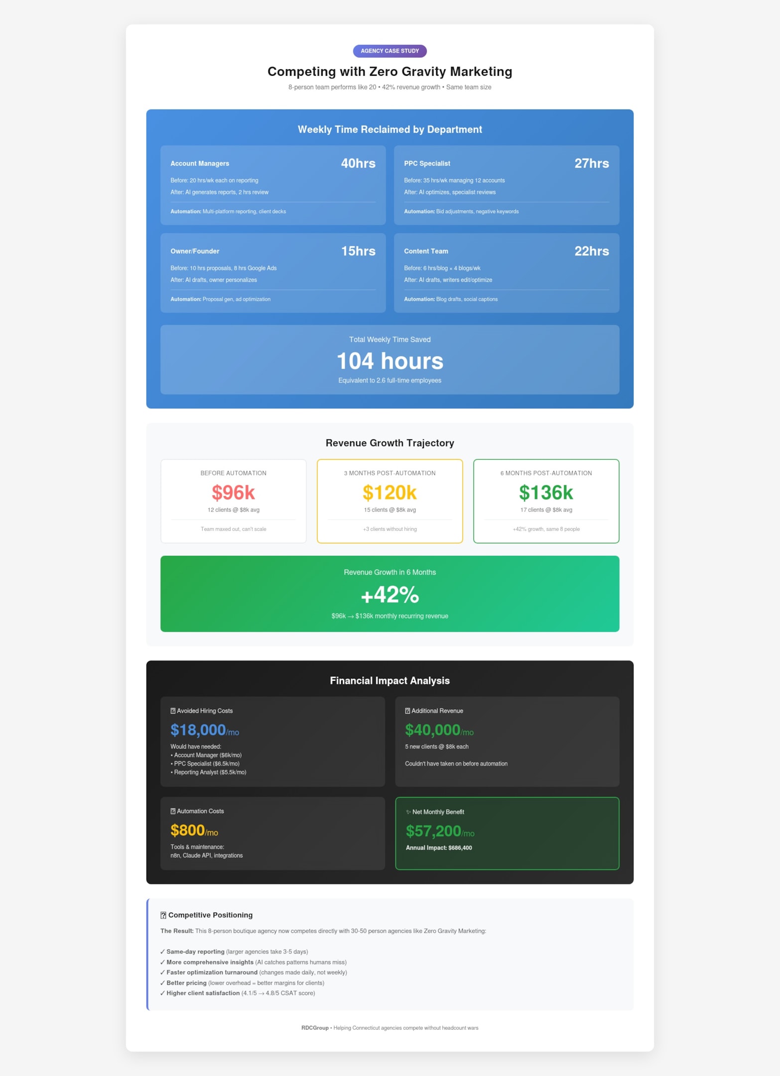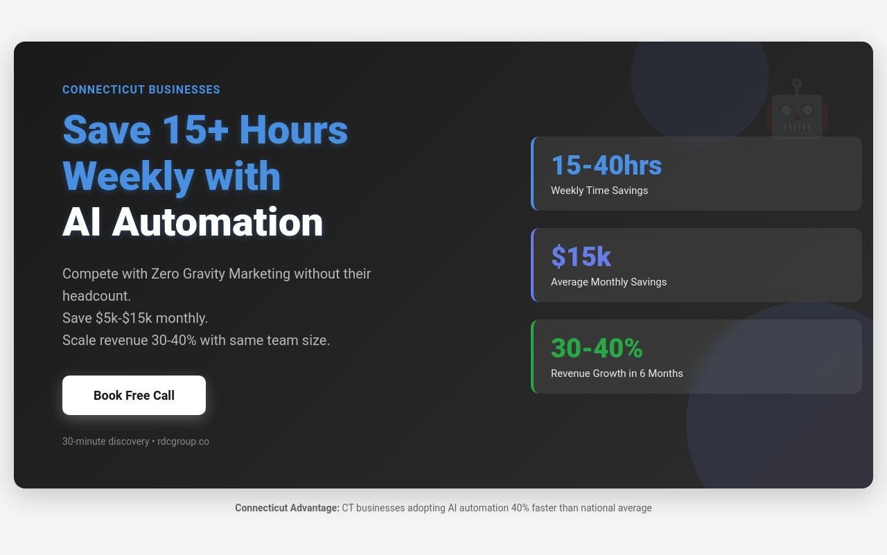 If you're running a Connecticut business doing $500k-$5M annually, competing against well-funded agencies like Zero Gravity Marketing in Shelton or established players across Fairfield County, you already know the pressure. High costs, competitive markets, and the constant need to do more with less.